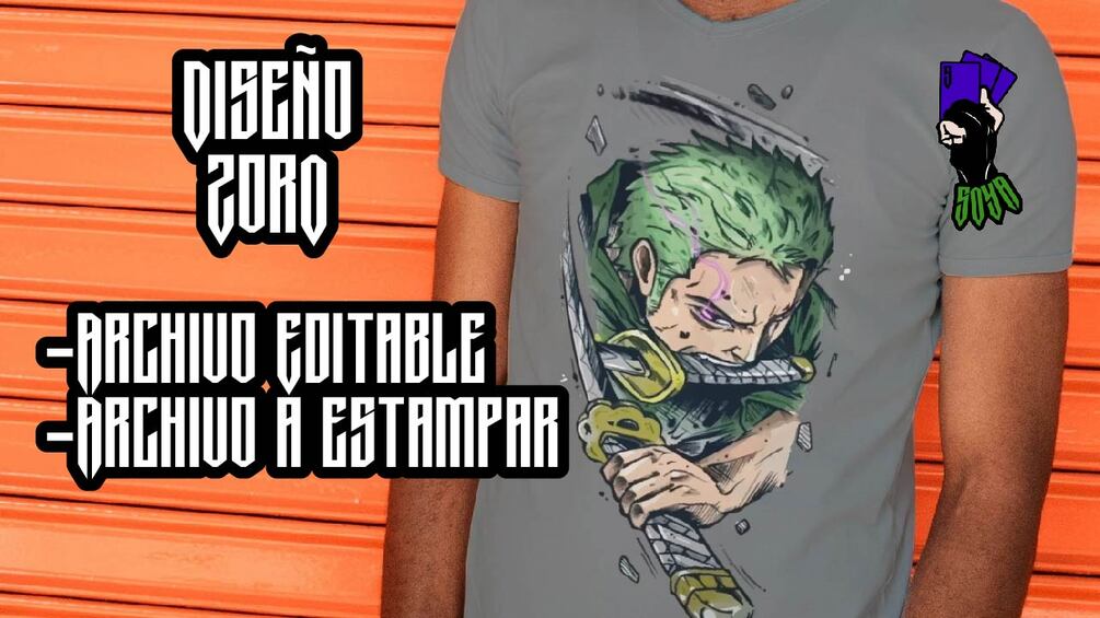 Diseño fanart con motivo Zoro de One Piece para estampar sobre T-shirt en vinyl o serigrafia.